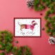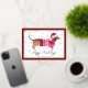 Envía sonrisas esta temporada con esta adorable tarjeta de vacaciones de papel de oro de Porch and Gable Design. Con un dachshund de acuarela vestido con un suéter rojo acogedor y un sombrero de Santa, este diseño festivo es perfecto para cualquiera que ame a su perro salchicha o simplemente aprecie un poco de alegría navideña. La tarjeta muestra un borde rojo intenso acentuado con un marco interior de papel de oro elegante, lo que añade un toque de brillo y sofisticación.