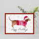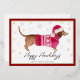 Tarjeta Festiva Con Relieve Metalizado Perro Vienés Salchicha de Dachshund Rojo Feliz Día