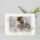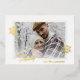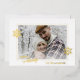Única, clásica, moderna, bonito y decorativa tarjeta de vacaciones. Cute Happy Holidays saludo texto y habitación para personalizar o personalización con una foto, nombre de familia (o nombres individuales) y (limitado) mensaje de saludo de tu elección, enmarcado por dos copos de nieve de Relieve metalizado dorado sobre un elegante fondo blanco nevado. Con un mensaje de personalizable en la parte trasera de la tarjeta.