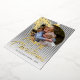 Navidades clásicos contemporáneos tarjeta de bienvenida de temporada navideña con agujas de pino blanco colorido patrón de hojas de guiso sobre un elegante fondo blanco y gris de patrón de lona de gingham, con Relieve metalizado de oro real Texto de deseo Feliz Navidad. Con opción y espacio para el personalizar del texto, el nombre de la familia y la fecha del año, y añadir una foto personal de su elección en la parte delantera, y un mensaje de bienvenida de la temporada de personalizable en el reverso de la tarjeta.