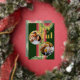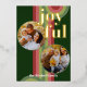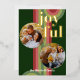 Navidades clásicos contemporáneos tarjeta de bienvenida de temporada navideña con un patrón abstracto de color verde claro y oscuro, rosa y rojo con Relieve metalizado oro real JOYFUL texto de deseo. Con espacio para personalizar o personalización con dos fotos y nombre de familia (o nombres individuales) en la parte delantera, y un mensaje de bienvenida de temporada de personalizable en el reverso de la tarjeta.
