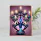 Tarjeta Festiva Con Relieve Metalizado Pintura de Menorah Happy Hanukkah Gold Purple