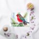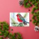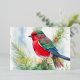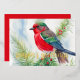 Tarjeta Festiva Con Relieve Metalizado Pintura del verde rojo pájaro invernal