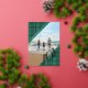 Tarjeta Festiva Con Relieve Metalizado Plaid JOY Diagonal Turquesa Real