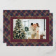 Tarjeta Festiva Con Relieve Metalizado Polo Equestrian Burgundy Plaid Photo Christmas