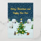 Tarjeta Festiva Con Relieve Metalizado Pueblo de nieve navidad con árbol de navidad