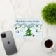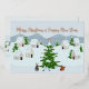 Tarjeta Festiva Con Relieve Metalizado Pueblo navideño con animales lindos y nieve