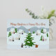 Noche pacífica y nevada en la aldea de Navidad tarjeta de Navidad personalizada elegante con detalles metálicos.