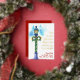 Tarjeta Festiva Con Relieve Metalizado Puesto de lámpara de Navidad en acuarela Festivo H