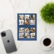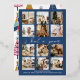 Tarjeta de vacaciones de Navidades personalizados de Ricaso de qué año - diseñada con un texto de tipografía de Relieve metalizado real con plantillas de fotos al frente y un patrón de árbol de Navidad al fondo CAMBIA LAS FOTOS DE MUESTRA A TU PROPIO