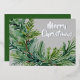 Tarjeta Festiva Con Relieve Metalizado Rama de hoja perenne de Navidad