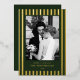 Disfruta la romanza y el encanto de la temporada navideña con nuestra elegante tarjeta de Navidad "Merry & Married", con rayas de hoja perenne, una mezcla perfecta de elegancia vintage y sofisticación de dinero antiguo.