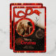 Tarjeta Festiva Con Relieve Metalizado Red Bow Plaid & Gold Foil Single Photo Christmas