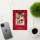 Tarjeta Festiva Con Relieve Metalizado Red Doodle 3 Photo Christmas Gold