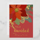 Tarjeta Festiva Con Relieve Metalizado Red Poinsettia Feliz Navidad Gold