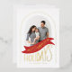 Esta elegante y festiva tarjeta fotográfica de vacaciones cuenta con letras originales con un ilustracion de carteles. El arco decorativo se puede imaginar como un globo de nieve, puerta, arcoiris, campana, etc. Personalizar con su propia foto y texto. Esto viene con un patrón de coincidencia en la parte posterior.