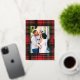 Esta moderna tarjeta de fotos de vacaciones presenta un clásico fondo de tartán rojo con el saludo "JOY" enmarcando una sola foto vertical. Este diseño se adapta a una sola foto vertical en la parte delantera de la tarjeta. En el reverso está el mismo fondo escogido, al que se puede añadir otra foto o texto adicional seleccionando la opción "personalizar más adelante". ¡Añada el factor "wow" con una tarjeta de vacaciones de Relieve metalizado realmente presionada este año!