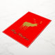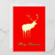 Tarjeta Festiva Con Relieve Metalizado Reno Rojo Elegante Dorado