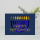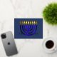 Tarjeta Festiva Con Relieve Metalizado Resumen moderno Menorah Blue