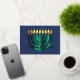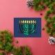 Tarjeta Festiva Con Relieve Metalizado Resumen moderno Menorah Green
