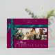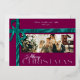This customizable Christmas card blends timeless elegance with personal warmth, featuring a lifelike trompe-l'œil ribbon that wraps the design like a festive gift. The central photo and greeting are fully editable, printed in silver letters that give each word a bright finish. Typography is beautifully balanced on the raspberry tones background. The back is left blank for a handwritten message, making every card a heartfelt keepsake crafted with care.