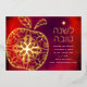 Tarjeta Festiva Con Relieve Metalizado Rosh Hashanah Año Nuevo judío Apple Red Real Gold