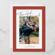 Tarjeta de foto familiar de Relieve metalizado rojo oxidado con un diseño de fondo de gingham clásico. Con un brillante marco de Relieve metalizado y un nombre familiar personalizado, esta célebre y bendecida tarjeta es perfecta para saludos de Acción de Gracias. La parte de atrás incluye un mensaje especial de Acción de Gracias, lo que hace que sea una manera reflexiva de compartir gratitud y buenos deseos con sus seres queridos. Un recuerdo atemporal para celebrar la familia, el amor y la alegría festiva.