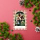 Tarjeta Festiva Con Relieve Metalizado Rustic Red Gingham Arch Foto Navidades modernos