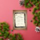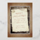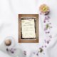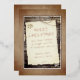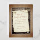 Rustic Wood Old Paper Script Feliz Navidad Tarjeta de vacaciones de foil. Una escena rústica con madera y papel de pergamino viejo con un texto en el papel en foil de oro rosa real - personalice el texto con su texto.