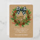 Esta tarjeta de vacaciones de Relieve metalizado dorado, de diseño bonito, exhibe elegantes acuarelas de una corona adornada con un arco a cuadros de búfalo blanco y negro, pinecones, hojas verdes de hueso, bayas rojas y agujas de pino. Su elegante y rústico diseño capta la esencia de la temporada de vacaciones de diciembre y atrae a los que aprecian los ilustraciones artísticos. La tarjeta ofrece opciones de personalización que le permiten personalizarla con el nombre de su empresa, el nombre de su familia o los nombres individuales. Además, puede incluir un poema de bienvenida de temporada a medida en el frente, lo que lo convierte en una opción pensada para extender la alegría de las vacaciones.