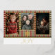 ¡Saludos de temporada y buenos deseos! Nuestra tarjeta de saludo de vacaciones está diseñada para celebrar el amor y la risa de tu familia. El clásico fondo rojo, verde y marrón canas aporta un toque festivo y atemporal, mientras que el elegante Relieve metalizado dorado "Joy" y el copo de nieve en la parte inferior aportan un toque de sofisticación. Muestra tus tres fotos familiares favoritas en marcos de Relieve metalizado dorado brillantes, creando un bigote hermoso y personalizado. En la parte posterior de la tarjeta encontrará un espacioso cuadro de texto en blanco para que pueda compartir su más sentida mensaje de vacaciones, rodeado por el acogedor patrón de manto. Envíe una tarjeta tan única y apreciada como los recuerdos que ha hecho juntos. Creado por Simply Farmhouse Press.