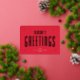 Tarjeta Festiva Con Relieve Metalizado Saludo de Temporada de Rojo Brillante con Estrella