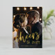 Esta moderna y elegante tarjeta de feliz año nuevo para 2023 presenta una tipografía moderna de escritura de Relieve metalizado dorado que dice "vítores al 2023", y presenta su foto personal favorita. La parte trasera de la tarjeta es negra.