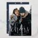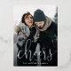 Las audaces y elegantes tarjetas fotográficas de Año Nuevo presentan una foto vertical o orientada a retratos con "vítores al [año]" colocadas en letras de guiones de caligrafía de Relieve metalizado plateado. Personalice con un mensaje o una firma familiar en la parte inferior.