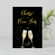 Saludos a la tarjeta de vacaciones de Relieve metalizado dorado de Año Nuevo de Champagne... Celebra el Año Nuevo con estilo enviando tarjetas de felicitación hechas con Relieve metalizado de oro real. El texto delante de la tarjeta está todo en Relieve metalizado dorado, con copas de champán dorado coordinadas para enfatizar tu saludo "Cheers!". En la parte posterior de la tarjeta en texto dorado (tinta de la impresora, no Relieve metalizado) es un mensaje sincero que puede mantener tal como está o revisar con su propia redacción... seguido de su firma, también en oro. Todo el texto se puede revisar utilizando la plantilla de personalización.