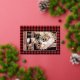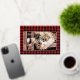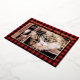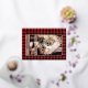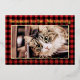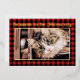 El diseño está compuesto por un patrón de cuadros/tartan rojo y negro. Agrega una foto personalizada tuya con tu gato mascota. La foto está adornada arriba con saludos dorados únicos - "Temporada para ser Meowwy".