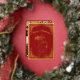 Esta elegante tarjeta roja de vacaciones cuenta con un frente con un filigree intrincado en las cuatro esquinas. Santa Claus está en la parte delantera y central cargando sus regalos. La parte posterior de la tarjeta ofrece un collage de seis fotos: una grande en la esquina superior izquierda y cinco más pequeñas en la parte inferior y derecha.