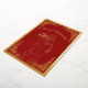 Tarjeta Festiva Con Relieve Metalizado Santa Claus con regalos, en rojo, oro