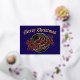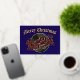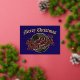 Santa Clause in sleigh pulled by reindeer flying in front of a full moon in a retro woodcut style. You can easily personalize the text and customize the background color with this Christmas card template.