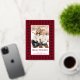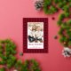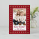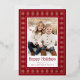 A Happy Holidays or Merry Christmas photo greeting card with a Scandinavian style pattern border in real foil, custom name, single photo template and customizable text "Happy Holidays". Dark red background.