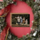 Tarjetas fotográficas de vacaciones modernas con tu foto horizontal con "Feliz Navidad" mostrada en un guión de Relieve metalizado dorado escrito a mano. Personalice la tarjeta de fotos de Navidad del Relieve metalizado con su nombre de familia y el año con letras blancas. La única tarjeta de vacaciones fotográfica se invierte para mostrar un fondo marrón caramelo con puntos blancos sutiles.