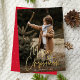 Celebre la temporada con estilo con estas modernas tarjetas de fotos de vacaciones, con tu foto vertical acompañada de "Feliz Navidad" en un deslumbrante guión de Relieve metalizado dorado escrito a mano. Personalice este elegante diseño con el nombre de su familia y el año con letras blancas y nítidas para que le den un toque de sentidos. La parte posterior de la tarjeta muestra un fondo rojo vibrante con puntos blancos sutiles, añadiendo un acabado festivo y sofisticado. Perfecto para compartir tu alegría de vacaciones, estas tarjetas de fotos de Relieve metalizado de personalizable hacen una impresión duradera!