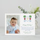 Diseño de tarjeta fotográfica Preppy Happy Holidays con árbol de topiary Boxwood con arco rojo, en un plantador azul. Delante hay una forma escudo con espacio para un monograma de una sola letra. Los elementos de acuarela fueron pintados originalmente a mano por mí en acuarelas sobre papel 100% de algodón antes de ser escaneados y arreglados/estilizados digitalmente (la forma escudo es de otro artista). En el reverso aparece un patrón de clave griega, creado digitalmente por mí. Puede cambiar el color de contraste en la reversa (actualmente un verde de bosque) cambiando el color de fondo en la reversa (haga clic en el personalizar más abajo del área de personalización de texto. Esto le llevará a la herramienta de diseño.