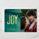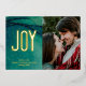 Tarjeta Festiva Con Relieve Metalizado Simple JOY en Resumen Foto Verde