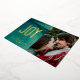 Impresiona a tus amigos y familia con esta hermosa y simple tarjeta de vacaciones de Relieve metalizado con puntos y la palabra JOY en Relieve metalizado prensado sobre un abstracto y espléndido fondo verde esmeralda. Así que bonito. Personaliza tu foto, mensaje y nombres. Quite el fondo trasero y sustituya el color fácilmente en la Herramienta de diseño.