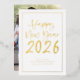 Simple Script Border Happy New Year 2026 Foto. Un juego de guiones para Feliz Año Nuevo 2026 que se imprime en Relieve metalizado real en tu elección de oro, oro rosa o plata para un toque de lujo glam como tus nombres bajo los cuales puedes personalizar fácilmente! Reemplace la imagen de ejemplo en la parte posterior por su propia favorita o elimine la foto de ejemplo mediante la edición adicional si no es necesario.