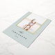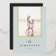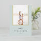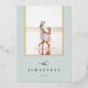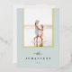 Una simple y elegante tarjeta fotográfica de vacaciones permite que tu foto familiar favorita ocupe el centro del escenario. El diseño de moda en colores atemporales presenta un suave fondo azul-verde con tu foto delineada en Relieve metalizado dorado, y tu nombre familiar y el año en la parte inferior en gris carbón oscuro. Añade dos fotos más atrás, junto con un saludo de vacaciones personal. Una hermosa elección minimalista que hará que sus envíos de correo de vacaciones destaquen del paquete.