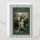A festive holiday photo card featuring a traditional striped border paired with a bold scalloped frame for a timeless, vintage-inspired look. The rich green center panel showcases your favorite family photo beneath a warm “Happy Holidays” greeting, while the deep red accents add a cozy, classic touch. Personalized text at the bottom completes the refined design. The back offers space for four additional photos, giving you plenty of room to share more joyful memories from your holiday season.