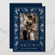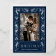Tarjeta Festiva Con Relieve Metalizado Stylish Greenery on Blue Christmas Photo Silver