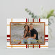 Comparte tus mejores deseos esta temporada con la Tarjeta de Foto con Paisaje de Cuadros Navideños Modernos, parte de la colección de cuadros navideños chic. El diseño presenta un cuadro audaz de gran tamaño en tonos de amarillo dorado, verde salvia, rojo cranberry y verde oscuro sobre un fondo blanco crujiente, creando un aspecto festivo y moderno que se siente atemporal. Un espacio de foto personalizable toma el centro del escenario, enmarcado con un borde de foil dorado sofisticado, haciendo que la foto de tu familia brille. En la parte superior, el texto editable dice "Feliz Navidad" pero se puede personalizar con cualquier saludo que prefieras, mientras que el espacio debajo es perfecto para agregar el nombre de tu familia y el año. En la parte posterior, puedes dejar el diseño en blanco para un acabado limpio o personalizarlo con tu propio mensaje navideño.